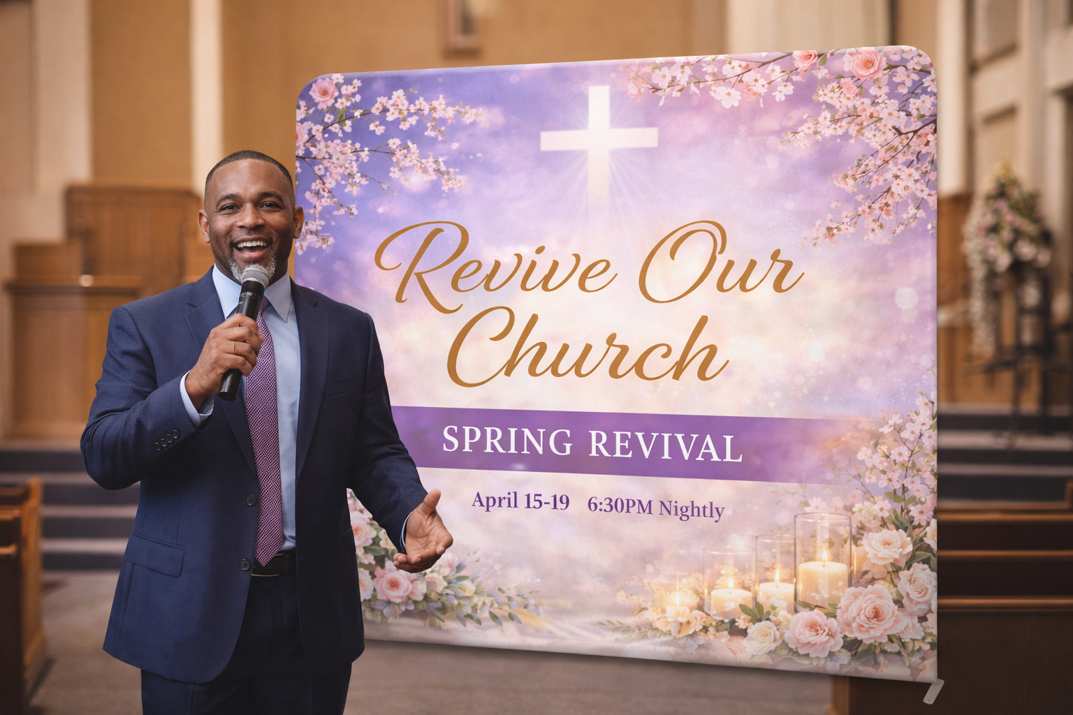 Create a beautiful focal point for your event with our Custom Curved Tension Fabric Backdrop—designed to elevate any space with elegance, style, and personalization.